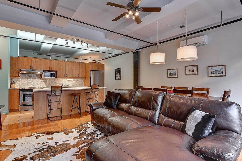 des Soeurs-Grises, app. 208. Ce condo de style loft marie