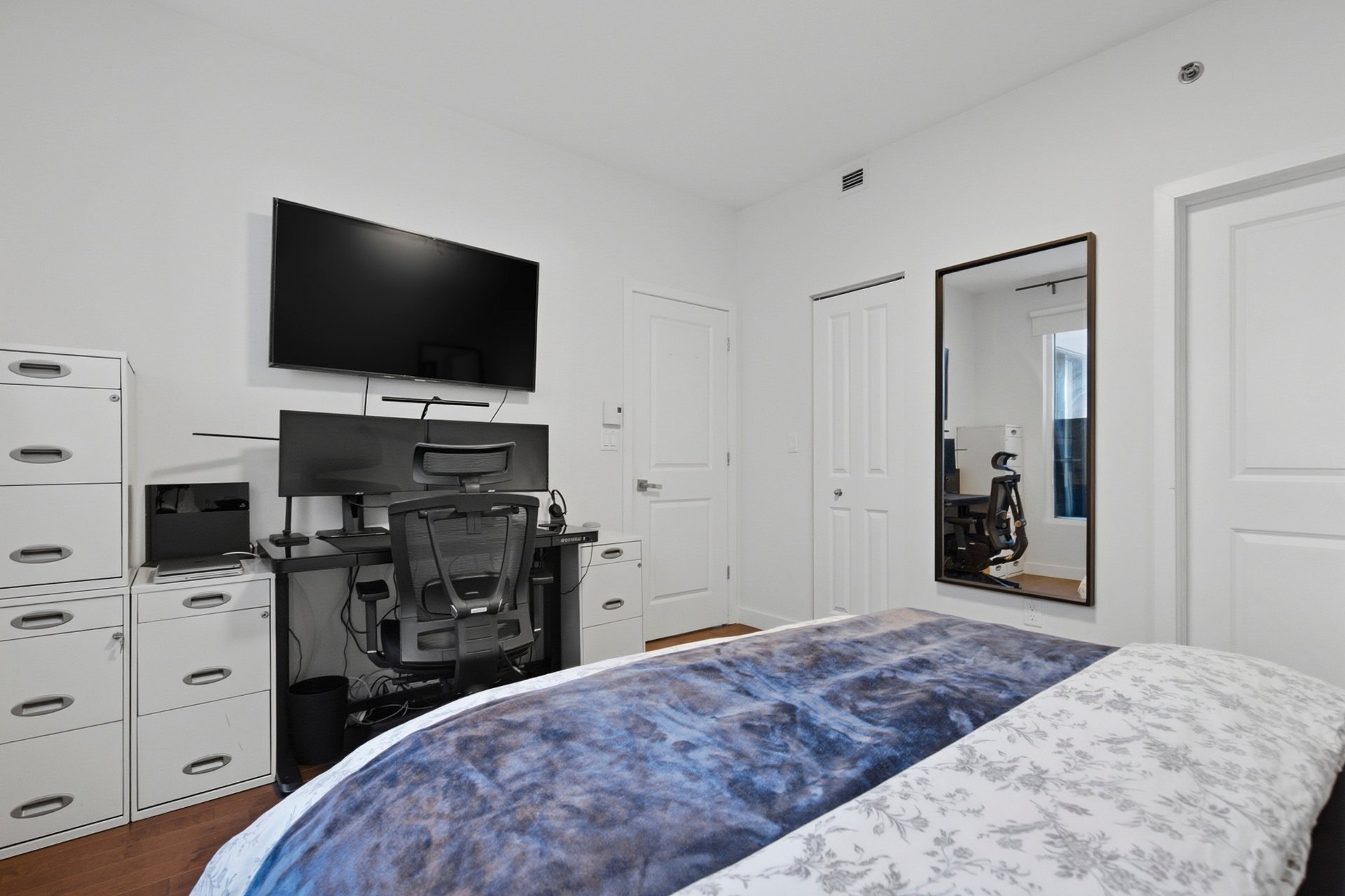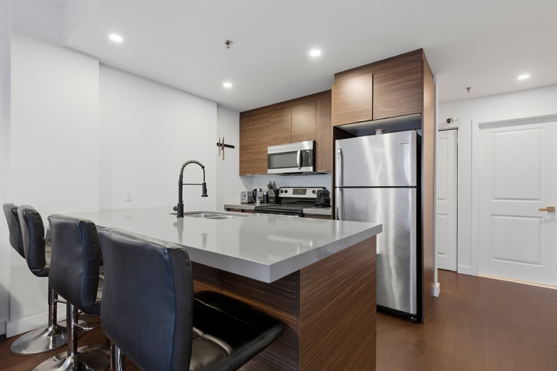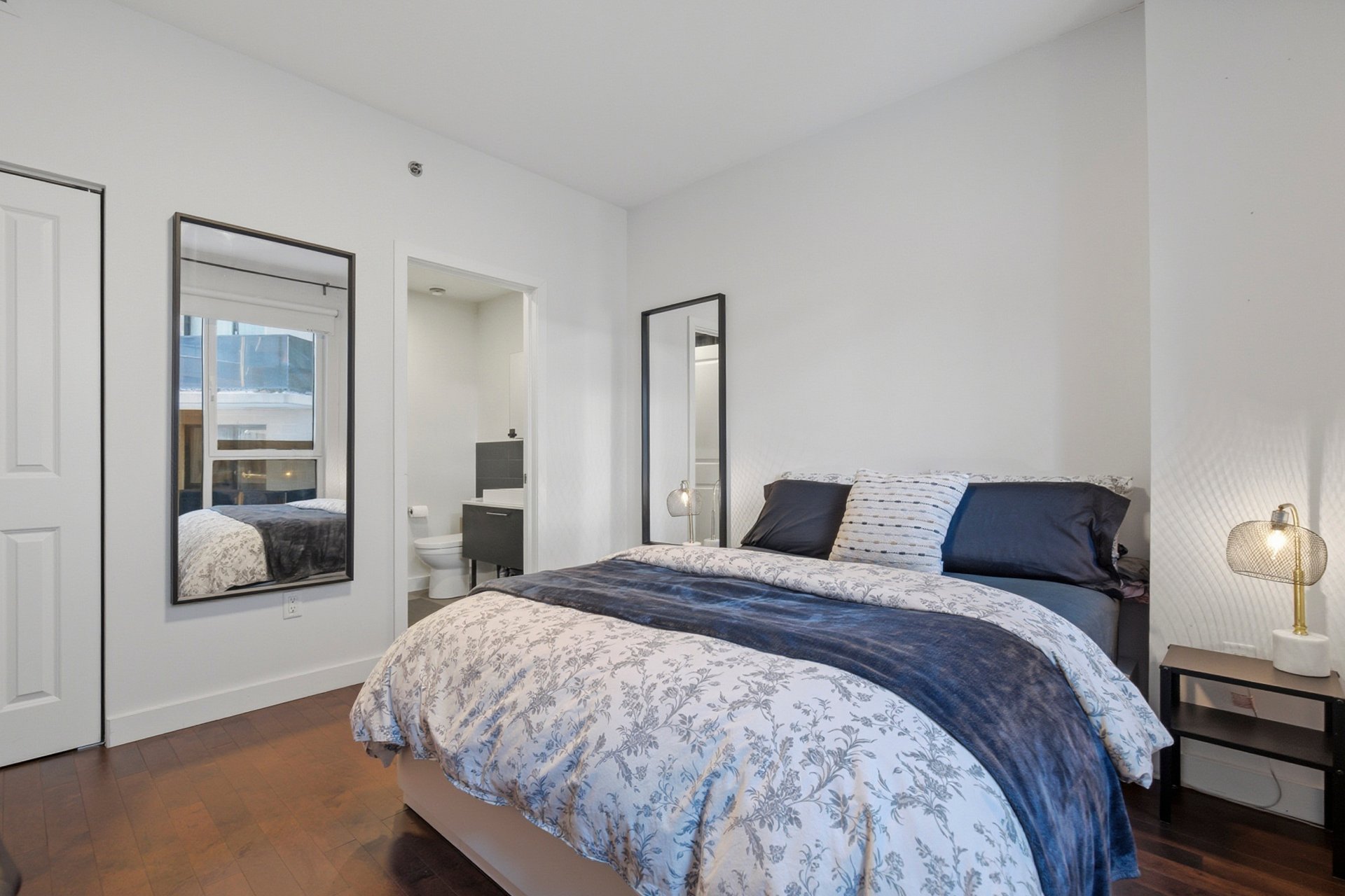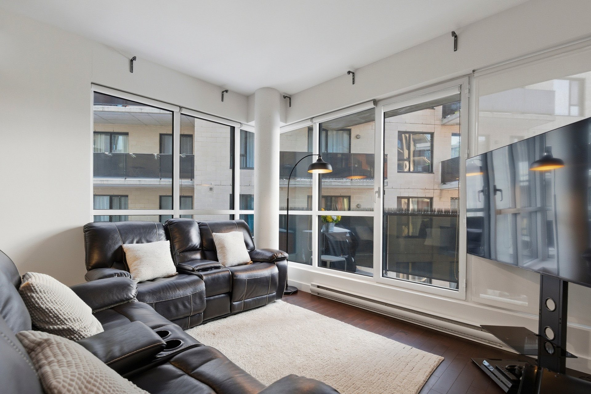 Bright and modern condo in Côte-des-Neiges, Triangle sector. Features 2 spacious bedrooms and 2 bathrooms, including an ensuite in the master. Kitchen with quartz countertops, interior storage, and a parking space included. Enjoy top-notch common areas: spa, jacuzzi, indoor pool, gym, cinema room, and reception hall. Ideally located just steps from Namur metro, Royalmount Mega Center, highways 15 & 40, and all services. Don't miss this opportunity!