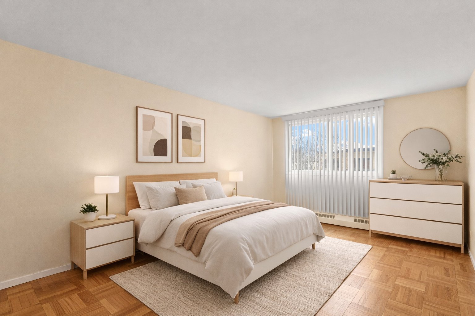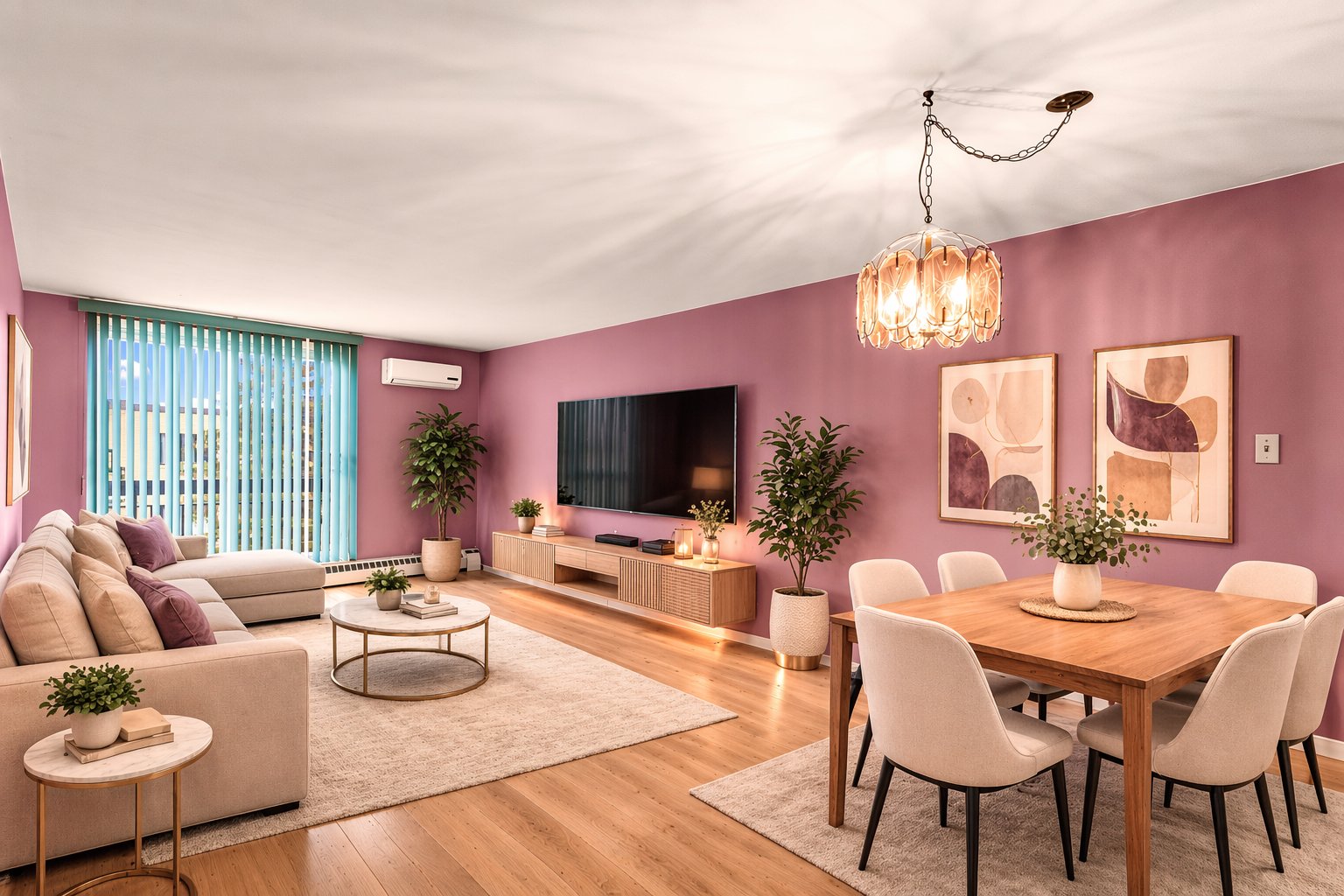 Light fixtures, blinds.